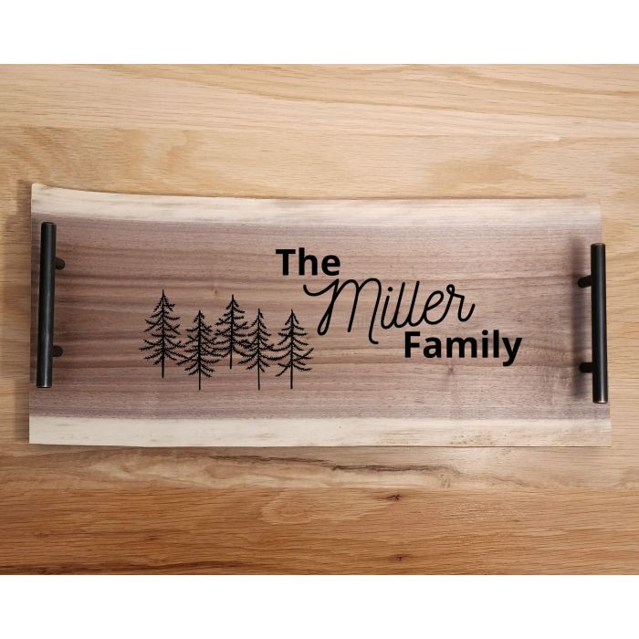 Beautiful engraved charcuterie board made from authentic and quality walnut with a beautiful live edge.